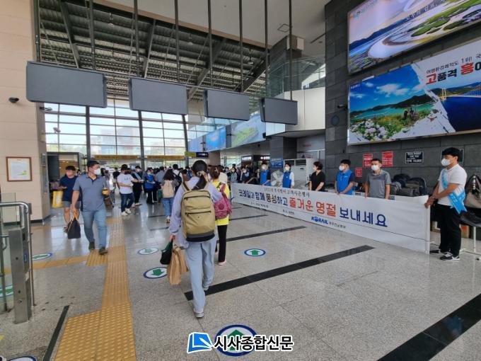 [½Ã»çÁ¾ÇսŹ® = ¿À½ÂÅà ±âÀÚ] Çѱ¹Ã¶µµ°ø»ç ±¤ÁÖÀü³²º»ºÎ´Â ¹ÎÁ· ÃÖ´ëÀÇ ¸íÀýÀÎ Ãß¼® ¿¬ÈÞ¸¦ ¸ÂÀÌÇÏ¿© ¡°9¿ù 8ÀÏ, ¼øÃµ¿ª°ú ±¤ÁÖ¼ÛÁ¤¿ª µî ÁÖ¿ä ¿ª ¸ÂÀ̹濡¼ ±Í¼º°´À» À§ÇÑ °í°´¸ÂÀÌ Çà»ç¸¦ °³ÃÖÇß´Ù¡±°í ¹àÇû´Ù.