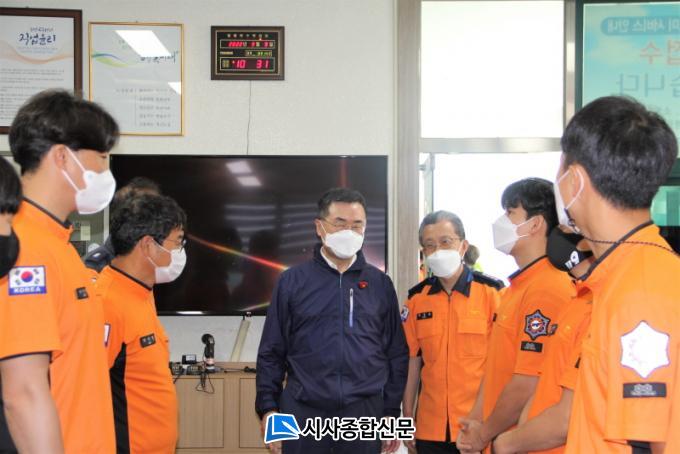 ¼Òº´Ã¶ ÀÇ¿øÀº ¹Ú»óÁø ¼ÀåÀ¸·ÎºÎÅÍ ¼Ò¹æ Ȱµ¿ ÇöȲ°ú ÁÖ¿ä ¾÷¹«¸¦ ûÃëÇß´Ù. À̾î ÈÀçÁø¾Ð¤ý±¸Á¶¤ý±¸±Þ´ë¿øµé°ú ´ëÈÀÇ ½Ã°£À» ÅëÇØ ºÐ¾ßº° °íÃæ»çÇ×À» µè°í À̸¦ °³¼±Çسª°¥ °ÍÀ» ¾à¼ÓÇß´Ù.