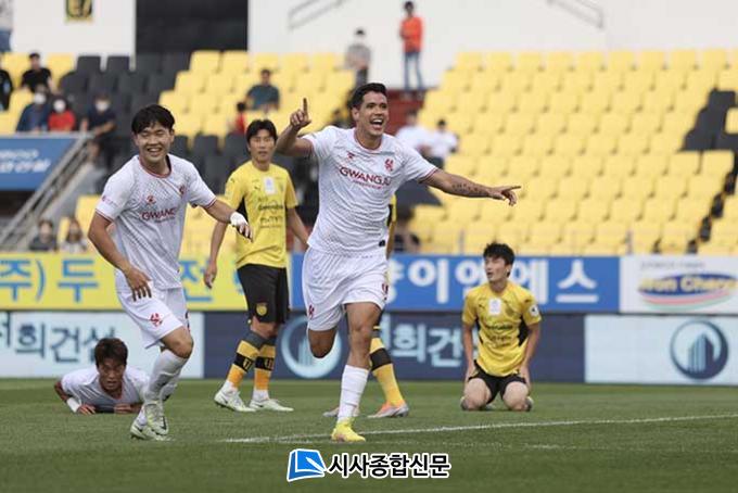 ½ÇÁ¡ ÈÄ ±¤ÁÖ°¡ ¹Ý°Ý¿¡ ³ª¼¹´Ù. ¾Æ·ÐÀÌ Àü¹Ý 19ºÐ µÎÇö¼®ÀÇ ÄÚ³ÊűÀ» Çì´õ·Î ¿¬°áÇßÀ¸³ª Å©·Î½º¹Ù¸¦ °Å¸Çß´Ù. 2ºÐ µÚ µÎÇö¼®ÀÇ ¿À¸¥¹ß Á߰Ÿ® ½´ÆÃÀº Àü³² °ñŰÆÛ ¿ÀÂù½Ä ¼±¹æ¿¡ °É·È´Ù.