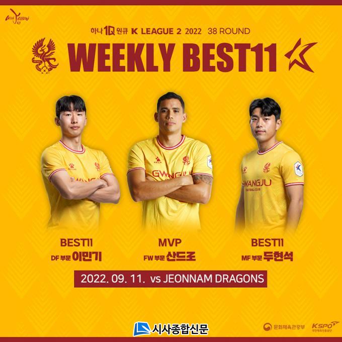 ±¤ÁÖ´Â Áö³ 11ÀÏ ±¤¾çÃ౸Àü¿ë°æ±âÀå¿¡¼ ¿¸° Àü³²µå·¡°ïÁî ¿øÁ¤ °æ±â¿¡¼ ¼±Á¦ ½ÇÁ¡¿¡µµ ºÒ±¸, »êµå·ÎÀÇ ¸ÍȰ¾à¿¡ ÈûÀÔ¾î 3:2 ¿ªÀü½ÂÀ» °Åµ×´Ù. ±¤ÁÖ´Â ÀÌ ³¯ ½Â¸®·Î 2À§ FC¾È¾ç°úÀÇ °ÝÂ÷¸¦ 13Á¡À¸·Î ¹ú¸²°ú µ¿½Ã¿¡ â´Ü ÃÖ´Ù½Â(22½Â)-ÃÖ´Ù½ÂÁ¡(75Á¡)À̶ó´Â »õ ¿ª»ç¸¦ ¾²°Ô µÆ´Ù.