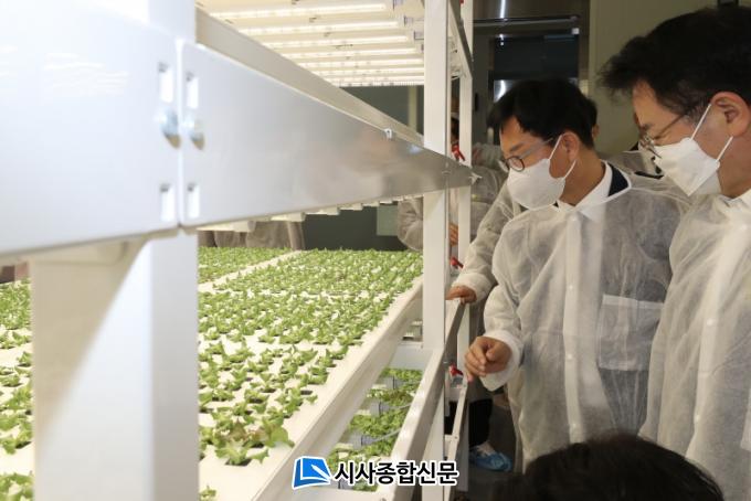 °¡Àå ÇÙ½ÉÀÌ µÇ´Â ½º¸¶Æ®ÆÊ ½Ä¹°Àç¹è½ÇÀº 1¡2ÃþÀ» ÇÕÃÄ 330§³(100Æò)±Ô¸ð·Î Á¶¼ºµÆ´Ù. Àç¹èÆÇÀ» 5´ÜÀ¸·Î ¼³Ä¡ÇØ ½ÇÁ¦ Àç¹è¸éÀûÀº 1650§³(500Æò)¿¡ À̸¥´Ù. ¹ß´ÞÀå¾ÖÀÎÀÇ ³ëµ¿·ÂÀ¸·Îµµ »ý»êÀÌ °¡´ÉÇÑ ÃÖ÷´Ü ³ó¾÷¹æ½ÄÀ» Àû¿ëÇß´Ù. ¹ß±¤´ÙÀÌ¿Àµå(LED) Á¶¸íÀ¸·Î ºûÀ» °ø±ÞÇϸç ICT(Á¤º¸Åë½Å±â¼ú)¸¦ Ȱ¿ëÇØ ¿ø°ÝÀ¸·Î °£´ÜÇÏ°Ô ¿Âµµ, ½Àµµ, ÀÌ»êÈź¼Ò ³óµµ, Á¶¸í ¹à±â µîÀ» Á¶ÀýÇÒ ¼ö ÀÖ´Ù.