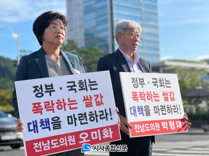 ÇÑÆí, Áøº¸´ç ¹ÚÇü´ë ÀÇ¿ø°ú ¿À¹ÌÈ ÀÇ¿øÀº Á¦365ȸ Àü³²µµÀÇȸ °³È¸¿¡ ¸ÂÃç 15ÀϺÎÅÍ 29ÀϱîÁö ¸ÅÀÏ ¾ÆÄ§ µµÃ» ¾Õ¿¡¼ ½Ò°ª Æø¶ô ´ëÃ¥ ¸¶·ÃÀ» Ã˱¸ÇÏ´Â 1ÀÎ ½ÃÀ§¸¦ À̾°í ÀÖ´Ù.