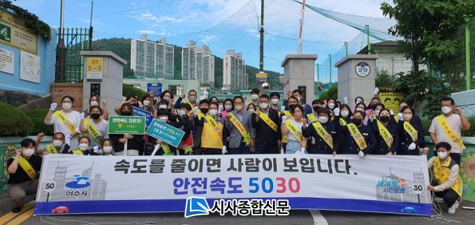 [½Ã»çÁ¾ÇսŹ® = ¿À½ÂÅà ±âÀÚ] ¿©¼ö½Ã(½ÃÀå Á¤±â¸í)°¡ Áö³ 15ÀÏ ¿©¼ö ¼ÃʵîÇб³ ¾Õ¿¡¼ ¡®5´ë ºÒ¹ý ÁÖÁ¤Â÷ ±ÝÁö¡¯, ¡®±³Åë¾ÈÀü¼Óµµ 5030 Áؼö¡¯ µî ±³Åë¾ÈÀü Ä·ÆäÀÎÀ» ½Ç½ÃÇß´Ù.