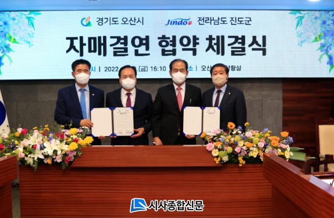 À̹ø Çù¾àÀº ¿À»ê½ÃÀÇ ¡®Á¦34ȸ ¿À»ê½Ã¹ÎÀÇ ³¯¡¯À» ¸Â¾Æ Áøµµ±º°ú ÀڸŰῬ Çù¾àÀ» ü°áÇϰí, ÀڸŰῬ ü°áÀ» ±â³äÇØ ¿À»ê½ÃÀÇ ¹Ý·Áµ¿¹° Å׸¶ÆÄÅ©¿¡ õ¿¬±â³ä¹° Á¦53È£ÀÎ Áøµµ°³ 4¸¶¸®¸¦ ¿À»ê½Ã¿¡ ±âÁõÇß´Ù.