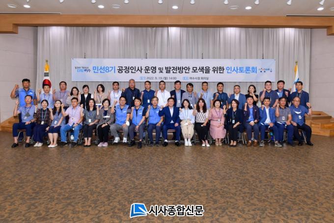 ¹Î¼± ¿©¼ö½Ã Ãâ¹ü ÀÌÈÄ ÃÖÃÊ·Î °³ÃֵǴ À̹ø ÀλçÅä·Ðȸ¿¡¼ Âü¼®ÀÚµéÀº Á÷·Äº° Àλç°íÃæ°ú °ÇÀÇ»çÇ× µîÀ» ÀÚÀ¯·Ó°Ô ÅäÀÇÇÏ°í °ø°¨´ë¸¦ È®»êÇÏ´Â ½Ã°£À» °¡Á³´Ù. ƯÈ÷ ¼Ò¼öÁ÷·Ä »ç¹«°ü ½ÂÁøÀÎ»ç ¾È¹è, 6±Þ ¹«º¸Á÷ Â÷â º¸Á÷ ºÎ¿© ½Ã Çö Á÷±Þ ±Ù¹«¿¬¼ö ¹Ý¿µ µîÀÌ ÁÖ¿ä °ÇÀÇ»çÇ×À¸·Î ³íÀǵƴÙ.