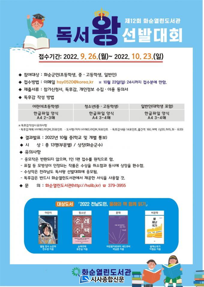 µ¶¼°¨»ó¹® ºÐ·®Àº A4¿ëÁö ±âÁØ ¾î¸°ÀÌ´Â 2~3¸Å, û¼Ò³âÀº 3~4¸Å, ÀϹÝÀº 3~4¸Å ÀÌ»óÀÌ´Ù. ÀÀ¸ð Èñ¸ÁÀڴ ȼø¿¸°µµ¼°ü ´©¸®Áý(http://hslib.kr)¿¡¼ Âü°¡½Åû¼, µ¶¼°¨»ó¹® ¾ç½Ä, °³ÀÎÁ¤º¸ ¼öÁý À̿뵿ÀǼ¸¦ ³»·Á¹Þ¾Æ ÀÛ¼ºÇØ À̸ÞÀÏ(hsy0520@korea.kr)·Î Á¦ÃâÇÏ¸é µÈ´Ù.