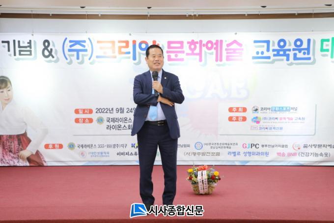 ÀÌ¿¡ ±¤ÁÖ ¼±¸°© ±¹È¸ÀÇ¿ø ¼Û°©¼®Àº ¢ßÄÚ¸®¾Æ¹®È¿¹¼ú±³À°¿ø ÇÏÀμ÷ ´ëÇ¥ÀÌ»çÀÇ ÃëÀÓÀ» Áø½ÉÀ¸·Î ÃàÇÏÇÑ´Ù´Â ÃàÀü°ú ÇÔ²² "°¢Á¾ ³ë·¡, ¹®È‧¿¹¼ú °ø¿¬, Áö¿ª Çà»ç µî Áö¿ªÀÇ º¼°Å¸®¿Í ½Ã¹ÎÂü¿©ÀÇ ÀåÀ¸·Î ±¤ÁÖ ½Ã¹ÎÀÇ ÁöÄ£ »îÀ» ´Þ·¡°í, Áö¿ªÀÇ ¹®È ¹ßÀüÀ» ¼±µµÇÏ´Â ´Ùä·Î¿î ÇÁ·Î±×·¥°ú ¶æ±íÀº Çà»ç¸¦ À̾ Áֱ⸦ ±â´ëÇÑ´Ù."°í ÀüÇß´Ù.