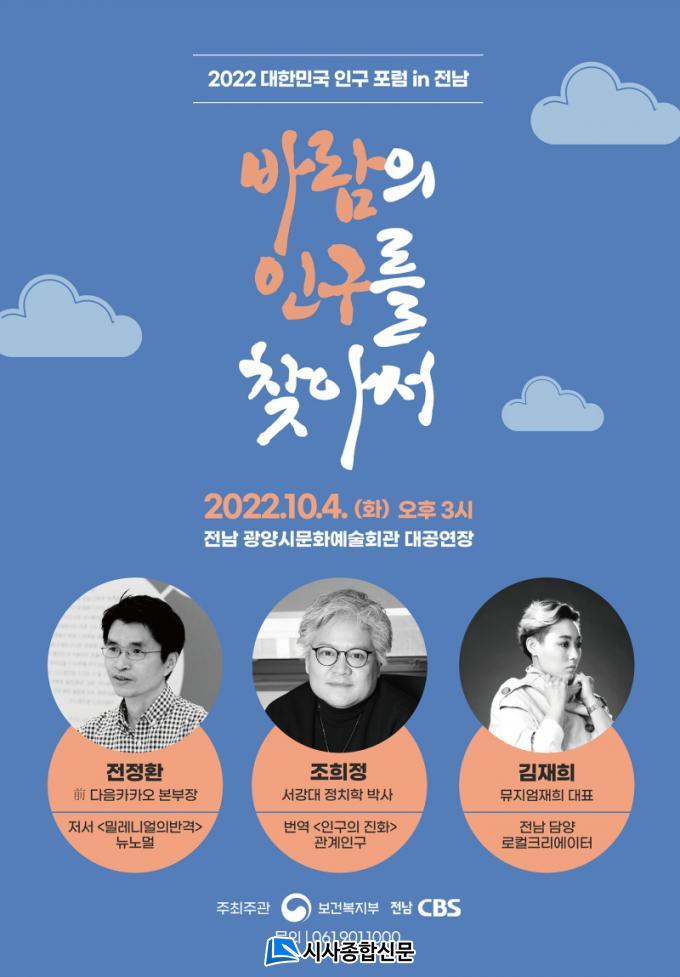 º¸°Çº¹ÁöºÎ¿Í Àü³²CBS°¡ ÁÖÃÖ¡¤ÁÖ°üÇÏ´Â À̹ø Æ÷·³Àº Ãâ»êÀ² ÀúÇÏ·Î ±Þ°ÝÇÑ Àα¸ Àýº®ÀÇ ±æ·Î µé¾î°¡°í ÀÖ´Â Çö½Ç ¼Ó¿¡¼ ÃÖ±Ù ±ÞºÎ»óÇÏ´Â °ü°èÀα¸(¹Ù¶÷ÀÇ Àα¸)¿¡ ´ëÇØ ¾Ë¾Æº¸°í Áö¿ª-û³â-·ÎÄÃÀ» ÁÖÁ¦·Î Áö¹æµµ½ÃÀÇ ¹Ì·¡ Àü·«À» ¸ð»öÇϱâ À§ÇØ ¸¶·ÃµÆ´Ù.