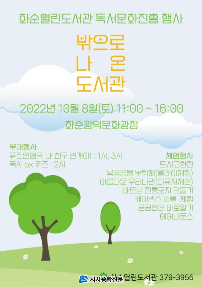 À̹ø Çà»ç¿¡´Â Ç»Àü ÀÎÇü±Ø ¡®³» Ä£±¸ ¹ø°³¾ß¡¯¿Í µ¶¼ OX ÄûÁî µî ¹«´ë Çà»ç¸¦ ºñ·ÔÇØ ȯ°æ¿¡ °üÇÑ Ã¥À» Àаí Ŭ·¹ÀÌ·Î ºÏ±Ý°õÀ» ¸¸µé¾îº¸´Â ¡®ºÏ±Ý°õÀ» ºÎÅ¹ÇØ¡¯, Áý¿¡ ÀÖ´Â Áß°í Ã¥ 2±ÇÀ» °¡Á®¿À¸é 2022³â Àü¶ó³²µµ ¿ÃÇØÀÇ Ã¥À¸·Î ±³È¯ÇØÁÖ´Â ¡®µµ¼ ±³È¯Àü¡¯À» ºñ·ÔÇÑ 6°³ÀÇ Ã¼Çè ºÎ½º°¡ ¿î¿µµÇ¸ç ±¤Àå Áß¾Ó¿¡´Â ¾î¸°À̵éÀ» À§ÇØ ´ëÇü ¿¡¾î¹Ù¿î½º°¡ ¼³Ä¡µÈ´Ù.