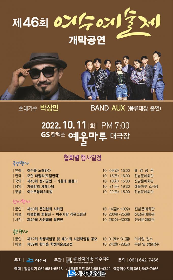 ¿ÃÇØ 46¹øÂ°¸¦ ¸ÂÀÌÇÏ´Â À̹ø ¿¹¼úÁ¦´Â Çѱ¹¿¹¼ú¹®È´ÜüÃÑ¿¬ÇÕȸ ¿©¼öÁöȸ(8°³ ÁöºÎ)¿¡¼ ÁÖ°üÇØ ´Ùä·Î¿î °ø¿¬°ú Àü½ÃÇà»ç·Î ²Ù¸çÁø´Ù. 11ÀÏ °³¸·½Ä¿¡´Â Àü¶ó³²µµ ¹«Çü¹®ÈÀç ±èÇâ¼ø ¸íâÀÇ ÆÇ¼Ò¸®¿Í ÇÔ²² ½Ã¸³±¹¾Ç´ÜÀÇ ¼öÁØ ³ôÀº °ø¿¬ÀÌ ÆîÃÄÁø´Ù.
