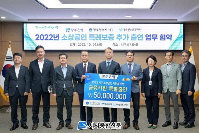 ¼±¸¿¡ µû¸£¸é ¿À´Ã(Áö³ 4ÀÏ) ±èÀ̰ ¼±¸Ã»Àå°ú ¼ÛÁ¾¿í ±¤ÁÖÀºÇàÀå, À̾ȹ¬ ±¤Áֽſ뺸ÁõÀç´Ü °æ¿µÁö¿øº»ºÎÀå µîÀÌ Âü¼®ÇÑ °¡¿îµ¥ ¡®¼Ò»ó°øÀΠƯ·Êº¸ÁõÀ» À§ÇÑ Ã⿬±Ý Ãß°¡Áö¿ø Çù¾à¡¯À» ü°áÇß´Ù.