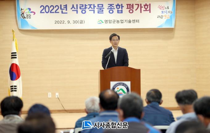 [½Ã»çÁ¾ÇսŹ® = ¿À½ÂÅà ±âÀÚ] ¿µ¾Ï±º(±º¼ö ¿ì½ÂÈñ)Àº 9¿ù 30ÀÏ ³ó¾÷±â¼ú¼¾ÅÍ¿¡¼ ½Ã¹ü´ÜÁö ´ëÇ¥ ¹× ³ó¾÷ÀÎ ÇнÀ´Üü, ¼±µµ³ó°¡ µî 50¸íÀÌ Âü¼®ÇÑ °¡¿îµ¥ ½Ä·®ÀÛ¹° Àü¹Ý¿¡ °ÉÄ£ ¼º°ú¿Í ¹®Á¦Á¡¿¡ ´ëÇÑ °³¼±¹æ¾ÈÀ» ¸¶·ÃÇϰíÀÚ ¡°2022³â ½Ä·®ÀÛ¹° Á¾ÇÕÆò°¡È¸¡±¸¦ °³ÃÖÇß´Ù.