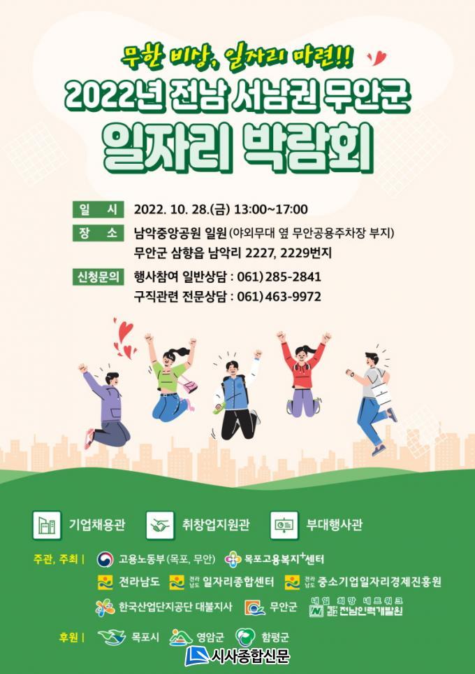 À̹ø ¹Ú¶÷ȸ´Â °í¿ë³ëµ¿ºÎ ¸ñÆ÷¡¤¹«¾È°í¿ëº¹ÁöÇ÷¯½º¼¾ÅÍ, Àü¶ó³²µµ, Àü¶ó³²µµ Áß¼Ò±â¾÷ÀÏÀÚ¸®°æÁ¦ÁøÈï¿ø, Àü¶ó³²µµ ÀÏÀÚ¸®Á¾ÇÕ¼¾ÅÍ, Çѱ¹»ê¾÷´ÜÁö°ø´Ü ´ëºÒÁö»ç°¡ °øµ¿ ÁÖ°üÇÏ°í ¹«¾È±ºÀÌ ÁÖÃÖÇÏ¸ç ¸ñÆ÷½Ã, ¿µ¾Ï±º, ÇÔÆò±ºÀÇ ÈÄ¿øÀ¸·Î ¼³²±Ç Àüü °í¿ë½ÃÀåÀ» ¾Æ¿ì¸¥´Ù.