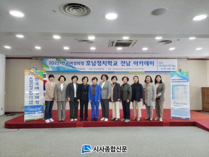 À̳¯ Àü³²¾ÆÄ«µ¥¹Ì¿¡¼´Â (Àü)±¸·Ê±ºÀÇȸ ºÎÀÇÀå À̽¿Á ÀÇ¿øÀ» ºñ·ÔÇÑ Çѱ¹¿©¼ºÀÇÁ¤»óÀÓ´ëÇ¥ (Àü)±¹È¸ÀÇ¿ø ½Å ¸í ÀÇ¿øµî Àü¤ýÇöÁ÷ ¿©¼ºÀÇ¿øµéÀÌ Âü¿©ÇØ Àü³² ¿©¼ºÀÇ Á¤Ä¡Âü¿©¸¦ ³ôÀÌ°í ÆòµîÇÑ Á¤Ã¥Àû ȯ°æÀ» Á¶¼ºÇϱâ À§ÇÑ ±³À° ½Ã°£À» °¡Á³´Ù.