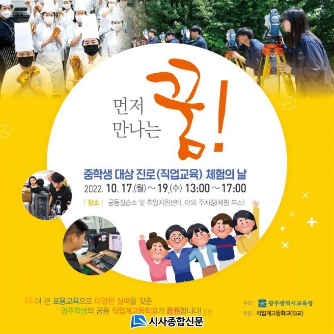 17ÀÏ ½Ã±³À°Ã»¿¡ µû¸£¸é 2022³â ÁßÇлý ´ë»ó ¡®Áø·Î(Á÷¾÷±³À°) üÇèÀÇ ³¯¡¯ Çà»ç´Â ½Ã±³À°Ã»ÀÌ ÁÖÃÖÇϰí 13°³ Á÷¾÷°è°íµîÇб³°¡ °øµ¿À¸·Î ÁغñÇß´Ù. 17~19ÀÏ »çÈê µ¿¾È ±¤ÁÖ°ø¾÷°íµîÇб³ ³» À§Ä¡ÇÑ ±¤Áֽñ³À°Ã» Ãë¾÷Áö¿ø¼¾ÅÍ ¹× °øµ¿½Ç½À¼Ò ÁÖº¯¿¡¼ ¿î¿µÇÑ´Ù.