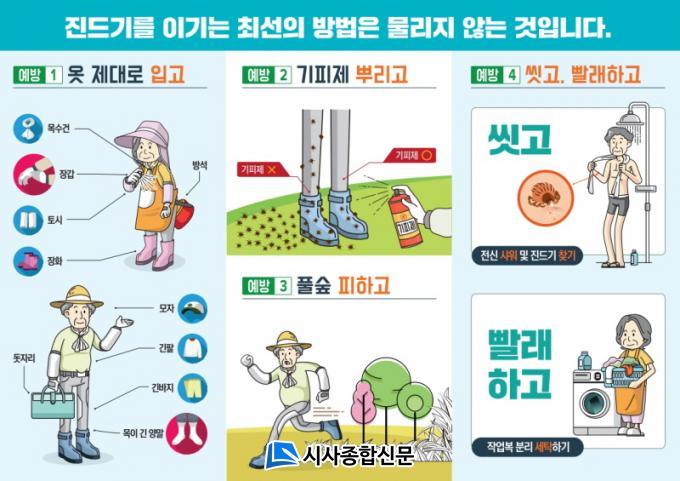 ¿¹¹æ¼öÄ¢Àº ¡ã¾ß¿ÜȰµ¿ ½Ã ¹àÀº»ö ±ä ¿Ê, Àå°©, ÀåÈ Âø¿ëÀ¸·Î ÇǺγëÃâ ÃÖ¼ÒÈÇϱ⠡ãÁøµå±â ±âÇÇÁ¦ »ç¿ë ¡ãÇ®¹ç À§¿¡ ¿Ê ¹þ¾îµÎÁö ¾Ê±â ¡ã¾ß¿ÜȰµ¿ ÈÄ ¿Ê ¼¼Å¹¡¤¸ñ¿åÇϱ⠡ã¹Ý·Áµ¿¹° »êÃ¥ ÈÄ Áøµå±â ºÙ¾îÀÖ´ÂÁö È®ÀÎÇϱ⠵îÀÌ´Ù.