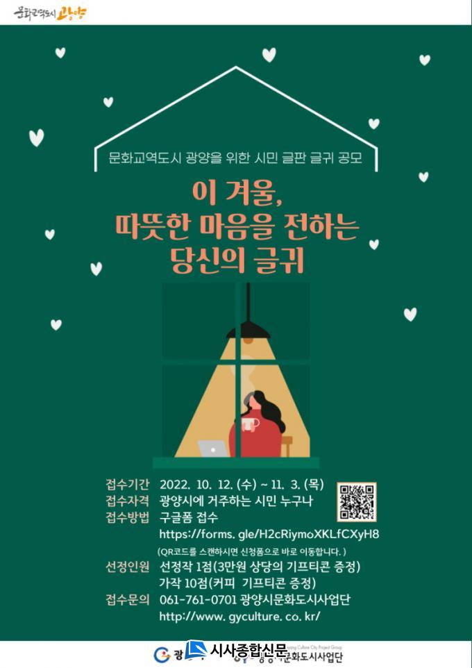°ø¸ð ÁÖÁ¦´Â ¡®ÀÌ °Ü¿ï, µû¶æÇÑ ¸¶À½À» ÀüÇÏ´Â ±Û±Í¡¯·Î 30ÀÚ À̳» ±ÛÀ̶ó¸é ±¤¾ç½Ã¹Î ´©±¸³ª ±¸±ÛÆû(https://forms.gle/H2cRiymoXKLfCXyH8)À¸·Î ÀÚÀ¯·Ó°Ô Âü¿©ÇÒ ¼ö ÀÖ´Ù. ´Ù¸¸ ÀúÀÛ±Ç ¶Ç´Â ¹ý¿¡ ÀúÃ˵Ǵ ±Û, Àüü ¶Ç´Â ÀϺΰ¡ ÀÌ¹Ì À¯Æ÷µÈ ±Û, ±¤°í¡¤»ó¾÷¼º ±Û µîÀº ½É»ç´ë»ó¿¡¼ Á¦¿ÜµÈ´Ù.