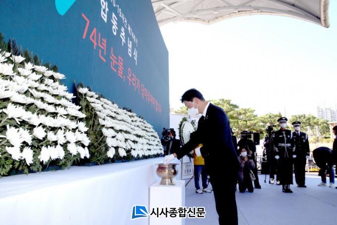 [½Ã»çÁ¾ÇսŹ® = ¿À½ÂÅà ±âÀÚ] ¼µ¿¿í Àü¶ó³²µµÀÇȸ ÀÇÀåÀº 19ÀÏ ¿ÀÀü 10½Ã ±¤¾ç ½Ã¹Î±¤Àå¿¡¼ °³ÃÖµÈ ¡®¿©¼ö‧¼øÃµ10‧19 Á¦47ÁÖ±â ÇÕµ¿Ãß³ä½Ä¡¯¿¡ Âü¼®ÇØ ¡°ÅëÇÑÀÇ ¿©¼ø»ç°ÇÀº ±¹°¡°¡ ´«¹° ¾Ä¾î ÁÖ¾î¾ß ÇÑ´Ù¡±°í °Á¶Çß´Ù.