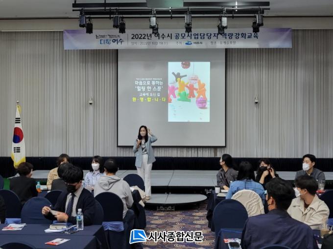[½Ã»çÁ¾ÇսŹ® = ¿À½ÂÅà ±âÀÚ] ¿©¼ö½Ã(½ÃÀå Á¤±â¸í)°¡ Á¤ºÎ °ø¸ð»ç¾÷¿¡ ´ëÇÑ ´ëÀÀ ´É·ÂÀ» ³ôÀ̱â À§ÇØ ¡®°ø¸ð»ç¾÷ ´ã´çÀÚ ¿ª·®°È ¿öÅ©¼ó¡¯À» 19ÀÏ ¿©¼öÀ¯Ä³½½È£ÅÚ¿¡¼ °³ÃÖÇß´Ù.