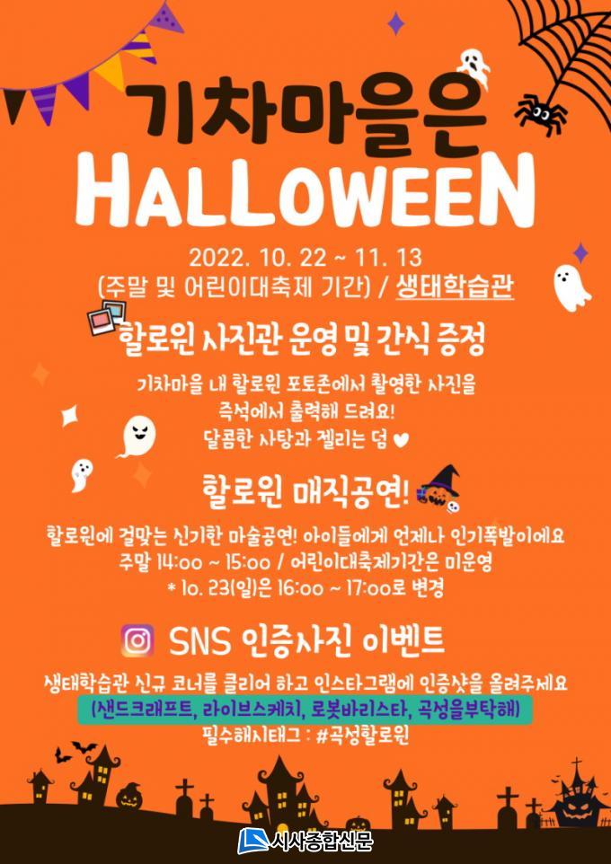 À̹ø À̺¥Æ®´Â ÁÖ¸»°ú ½Éû¾î¸°ÀÌ´ëÃàÁ¦ ±â°£(10. 27. ~ 10. 30.) µ¿¾È ±âÂ÷¸¶À» ³» À§Ä¡ÇÑ »ýÅÂÇнÀ°ü¿¡¼ ÁøÇàµÈ´Ù. À̺¥Æ® ±â°£ ³» ÇÒ·ÎÀ© º¹ÀåÀ» Çϰí ÇнÀ°üÀ» ãÀº ¾î¸°ÀÌ´Â »çÅÁ°ú Á©¸®¸¦ ¹«·á·Î ¹ÞÀ» ¼ö ÀÖ´Ù. ¶ÇÇÑ ÁÖ¸» 2½Ã¿¡´Â ÇÒ·ÎÀ© ¸¶¼ú °ø¿¬ÀÌ ÆîÃÄÁø´Ù. ¾Æ¿ï·¯ »÷µå Å©·¡ÇÁÆ®, ¶óÀÌºê ½ºÄÉÄ¡, ·Îº¿ ¹Ù¸®½ºÅ¸ µîÀ» ´Ù¾çÇÑ Ã¼Çè°Å¸®µµ ¸¸³ªº¼ ¼ö ÀÖ´Ù.