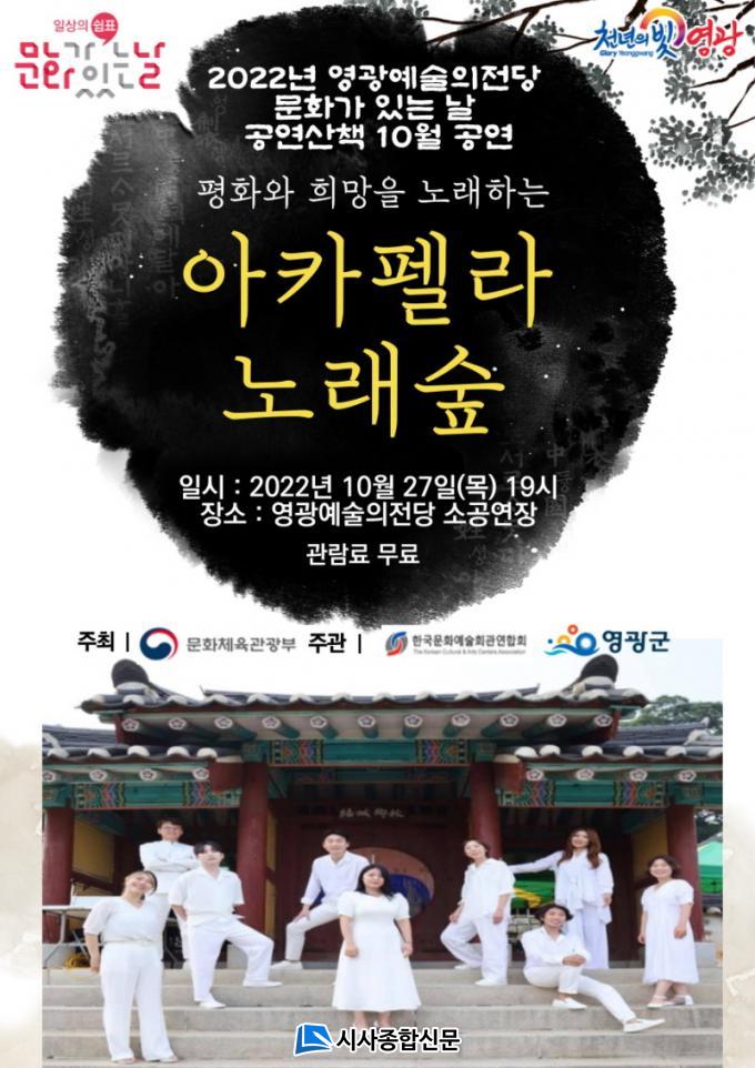 »ç¶û°ú ÆòÈ, Èñ¸ÁÀ» ³ë·¡ÇÏ´Â ¾ÆÄ«Æç¶ó¡®³ë·¡½£¡¯Àº ½Ì¾î¼Û ¶óÀÌÅÍ, ½Ã³ë·¡, Àεð¹êµå, ÀçÁî, ¼º¾Ç µî ´Ù¾çÇÑ À½¾Ç À帣¿¡¼ Ȱ¹ßÇÏ°Ô È°µ¿ÇÏ´Â ÀþÀº À½¾ÇÀεé·Î ±¸¼ºµÇ¾î ÇØ¿Ü․±¹³»°ø¿¬Àº ¹°·Ð ÃàÁ¦, ¹æ¼Û±îÁö ¾ÆÄ«Æç¶ó·Î À½¾ÇÀÇ ¾Æ¸§´Ù¿òÀ» ¾Ë¸®°í ÀÖ´Ù. ÃÖ±Ù¿¡´Â 3¡¤1 ¿îµ¿ÀÇ ¿ª»ç¸¦ ´ãÀº µðÁöÅÐ ½Ì±Û¾Ù¹ü¡®ÆòÈ ¾Æ¸®¶û¡¯À» ¹ß¸ÅÇÏ¿© ³ë·¡Ã¢ÀÛ, Æí°î ½Ç·Â±îÁö ÀÔÁõÇÏ¸é¼ Èñ¸ÁÀÇ ¸Þ½ÃÁö¸¦ ÀüÇϰí ÀÖ´Ù.