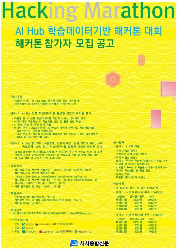 °ø¸ðÁÖÁ¦´Â ¡ãAI HUB ¾çºÀ ÇнÀµ¥ÀÌÅ͸¦ Ȱ¿ëÇÑ »ç¾÷È ÇØÄ¿Åæ ºÐ¾ß ¡ãAI HUB ÇコÄɾî, ÀÚÀ²ÁÖÇà, ÄÄÇ»ÅÍ ºñÀü, À½¼º/ÀÚ¿¬¾î ó¸® µî ÇнÀµ¥ÀÌÅ͸¦ Ȱ¿ëÇÑ »ç¾÷È ÇØÄ¿Åæ ºÐ¾ß 2°¡Áö´Ù. Âü°¡ ´ë»óÀº Big Data ºÐ¼®¿¡ °ü½É ÀÖ´Â ´ëÇлý ¹× ´ëÇпø»ýÀ¸·Î ÆÀ(2~5¸í) ´ÜÀ§·Î ÀÚÀ¯·Ó°Ô Âü°¡ÇÒ ¼ö ÀÖ´Ù.