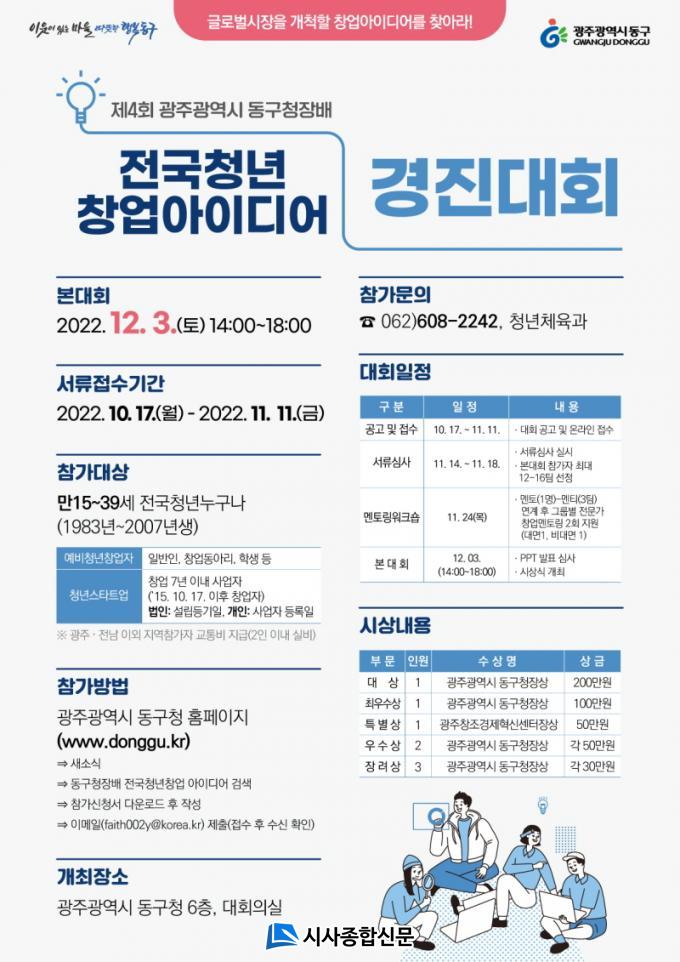 ¿ÃÇØ·Î 4ȸ°¸¦ ¸ÂÀº µ¿±¸Ã»Àå¹è Àü±¹ û³ââ¾÷ ¾ÆÀ̵ð¾î °æÁø´ëȸ´Â ¡®±Û·Î¹ú ½ÃÀåÀ» °³Ã´ÇÒ Ã¢¾÷¾ÆÀ̵ð¾î¸¦ ã¾Æ¶ó!¡¯¸¦ ÁÖÁ¦·Î Àü±¹ û³âµéÀÇ Çõ½ÅÀûÀÎ ¾ÆÀ̵ð¾î¸¦ ¹ß±¼ÇØ ¡®Ã»³â»ýŵµ½Ã, µ¿±¸¡¯·Î µµ¾àÇϰíÀÚ ÇÑ´Ù.