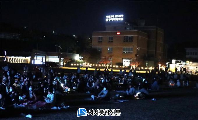 °¡À»ÀÇ ÇѰ¡¿îµ¥¼ ¾ß°£¿¡ ÁøÇàµÈ À̹ø Çà»ç´Â LED½ºÅ©¸°À» ÅëÇØ ¿µÈ ¡®¹Ì½º Æä·¹±×¸°°ú ÀÌ»óÇÑ ¾ÆÀ̵éÀÇ Áý¡¯ »ó¿µ°ú Æ÷ÅäÁ¸ ¹× °æÇ°Ãß÷ Çà»ç¿Í °¡À»¹ã ºÒ²É³îÀ̰¡ ÇÔ²² ÁøÇàµÆ´Ù.