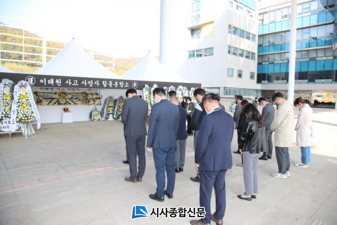 [½Ã»çÁ¾ÇսŹ® = ¿À½ÂÅà ±âÀÚ] ¹«¾È±ºÀÇȸ(±è°æÇö ÀÇÀå)´Â 11¿ù 1ÀÏ Àü³²µµÃ» ±¤Àå¿¡ ¸¶·Ã µÈ ÀÌÅ¿ø Âü»ç Èñ»ýÀÚ ÇÕµ¿ºÐÇâ¼Ò¸¦ ã¾Æ ÀÇÀå°ú ±ºÀÇȸ ÀÇ¿øµéÀÌ ÇåÈÇÏ°í ¹¬³äÇÏ¸ç °íÀÎÀÇ ³ÌÀ» ±â·È´Ù.