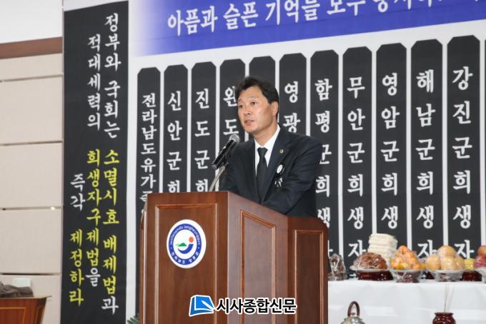 [½Ã»çÁ¾ÇսŹ® = ¿À½ÂÅà ±âÀÚ] ¼µ¿¿í Àü¶ó³²µµÀÇȸ ÀÇÀåÀº 11¿ù 1ÀÏ ¿ÀÈÄ 2½Ã ÀåÈﱺ¹Îȸ°ü¿¡¼ °ÅÇàµÈ ¡®Á¦6ȸ Çѱ¹ÀüÀï ÀüÈÄ ¹Î°£ÀÎ Èñ»ýÀÚ Àü¶ó³²µµ ÇÕµ¿À§·ÉÁ¦¡¯¿¡ Âü¼®ÇØ ¡°À¯Á·µéÀÇ °¡½¿ ¼Ó ÀÀ¾î¸®¸¦ Á¶±ÝÀ̳ª¸¶ Ç®¾îµå¸®µµ·Ï ³ë·ÂÇϰڴ١±°í ¹àÇû´Ù.