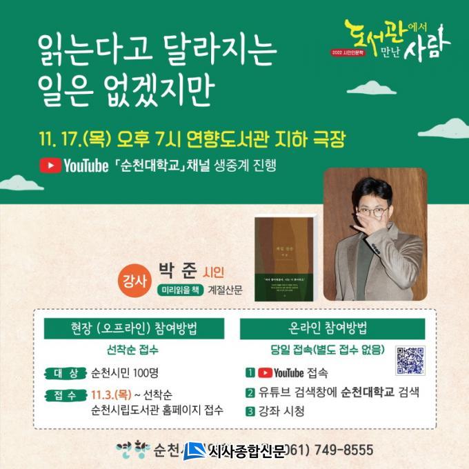 °¿¬Àº ¿Â¡¤¿ÀÇÁ¶óÀÎÀ¸·Î µ¿½Ã¿¡ ÁøÇàÇÑ´Ù. ¿Â¶óÀÎÀº À¯Æ©ºê ä³Î ¡®¼øÃµ´ëÇб³¡¯Ã¤³Î¿¡¼ ½Ç½Ã°£ »ýÁß°èµÇ¸ç ´©±¸³ª Âü¿©ÇÒ ¼ö ÀÖ´Ù. ÇöÀå Âü°¡´Â ¼±Âø¼øÀ¸·Î ¼øÃµ½Ã¸³µµ¼°ü ´©¸®Áý¿¡¼ ½ÅûÇÏ¸é µÈ´Ù.