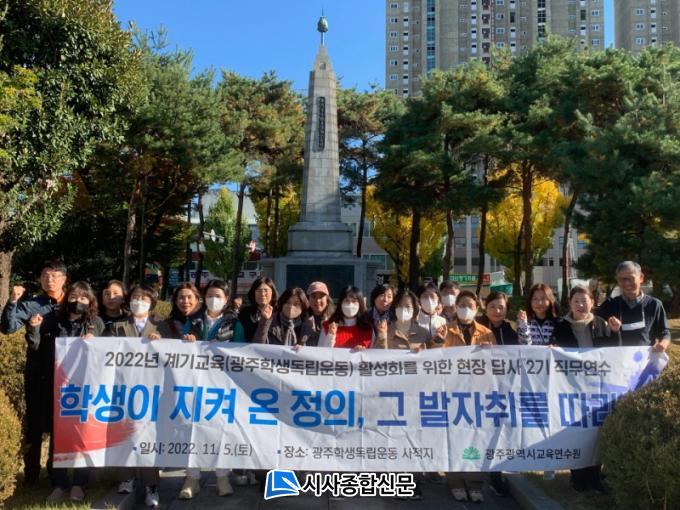 6ÀÏ ±¤ÁÖ±³À°¿¬¼ö¿ø¿¡ µû¸£¸é Á¦93ÁÖ³â Çлýµ¶¸³¿îµ¿ ±â³äÀÏÀ» ¸Â¾Æ ±¤ÁÖÇлýµ¶¸³¿îµ¿ÀÇ Áø¿øÁöÀÎ ³ªÁÖ¿ª µî »çÀûÁö ޹æÀ» ÅëÇÑ »ýµ¿°¨ ÀÖ°í ÇöÀå°¨ ÀÖ´Â ¿¬¼ö¸¦ ½Ç½ÃÇß´Ù. ƯÈ÷ ±¤ÁÖÇлýµ¶¸³¿îµ¿À» µÇ»õ°Üº¸°í ÇлýµéÀÇ ¹ÎÁֽùÎÀǽÄ, °øµ¿Ã¼¼º µî ÇÙ½É ¿ª·®À» ±æ·¯ÁÖ´Â ±³¿ø ¼ö¾÷¿ª·®À» Ű¿ì°íÀÚ ±âȹµÆ´Ù.