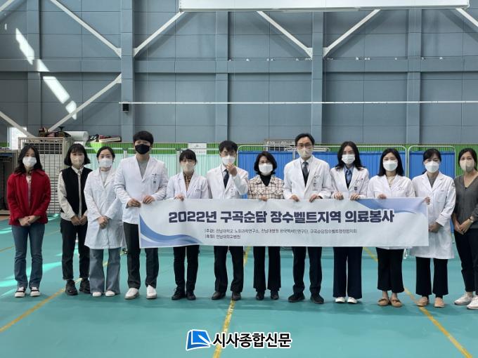 Àü³²´ëÇб³º´¿øÀº ³óÃÌÁö¿ª Ư¼º¿¡ ¸Â´Â ³»°ú, ºñ´¢ÀÇÇаú, Á¤Çü¿Ü°ú, ÀçȰÀÇÇаú, ¾È°ú µî 6¸íÀÇ Àü¹®ÀÇ Æ÷ÇÔ 14¸íÀÇ ÀÇ·áÁøÀ» ±¸¼ºÇÏ¿© ±¸·Ê±º °ø¼³¿îµ¿Àå ³» ´Ù¸ñÀûüÀ°°ü 1Ãþ¿¡ ¸¶·ÃµÈ Áø·á½Ç¿¡¼ ¾î¸£½Å 60¿© ¸í¿¡°Ô ¸ÂÃãÇü Áø·á¼ºñ½º¸¦ Á¦°øÇß´Ù.