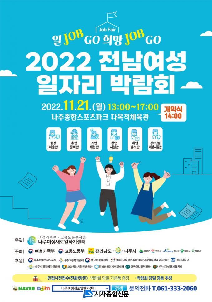 ³ªÁÖ½Ã(½ÃÀå À±º´ÅÂ)´Â ¿À´Â 21ÀÏ ³ªÁÖ½ºÆ÷Ã÷ÆÄÅ© ´Ù¸ñÀûüÀ°°ü¿¡¼ ¡®ÀÏ Àâ(JOB) °í(GO), Èñ¸Á Àâ(JOB) °í(GO)¡¯¶ó´Â ½½·Î°ÇÀ¸·Î 2022³â Àü¶ó³²µµ ¿©¼º ÀÏÀÚ¸®¹Ú¶÷ȸ¸¦ °³ÃÖÇÑ´Ù°í 16ÀÏ ¹àÇû´Ù.