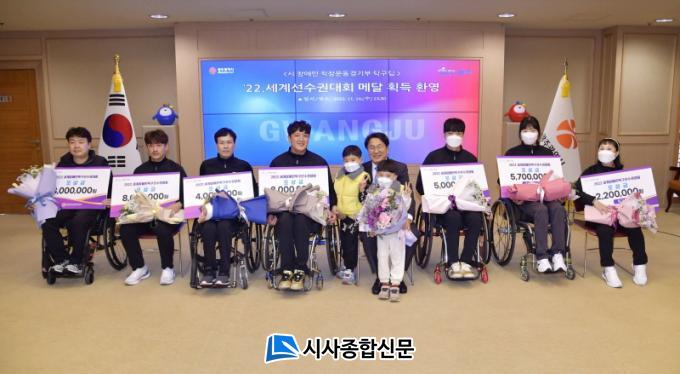 [½Ã»çÁ¾ÇսŹ® = ¿À½ÂÅà ±âÀÚ] °±âÁ¤ ±¤ÁÖ±¤¿ª½ÃÀåÀº 16ÀÏ ¿ÀÈÄ ½Ãû¿¡¼ ¡®2022 ¼¼°èÀå¾ÖÀÎŹ±¸¼±¼ö±Ç´ëȸ¡¯¿¡¼ °ªÁø ¼ºÀûÀ» °ÅµÐ ±¤ÁÖ¼±¼ö´ÜÀ» ÃÊÃ»ÇØ ȯ¿µÇß´Ù.