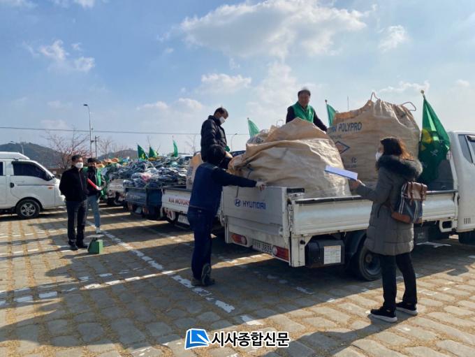 À̹ø Çà»ç¿¡´Â ¼øÃµ½Ã¿Í À¾¸éµ¿»ç¹«¼ÒÀÇ Àû±ØÀûÀÎ Áö¿øÀ¸·Î ¸¶À»º°·Î ¿î¹ÝÇÑ ¹°Ç°À» À¾¸éµ¿ °ü³»¿¡ ¼ö°Å Àå¼Ò¿¡¼ ¹°Ç°º°·Î ¼±º°ÇÏ¿© ±¹°¡Á¤¿ø ½ºÆ÷Ã÷¼¾ÅÍ ÁÖÂ÷Àå¿¡ Áý°áÇØ ȯ°æ°ø´Ü°ú ¹Î°£ Áý°Ô Â÷·® 4´ë¸¦ Æ÷ÇÔÇØ Æ®·° 200¿©´ë°¡ Çà»ç¿¡ Âü¿©Çß´Ù.