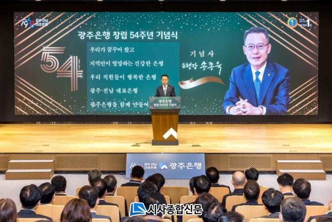 ¼ÛÁ¾¿í ±¤ÁÖÀºÇàÀåÀº ±â³ä»ç¿¡¼¡°Äڷγª ÆÒµ¥¹Í°ú ±Þº¯ÇÏ´Â ±ÝÀ¶½ÃÀå, °æ±âħü µîÀÇ ¾î·Á¿î °æ¿µÈ¯°æ ¼Ó¿¡¼µµ ³»½Ç ¼ºÀå°ú ¹Ì·¡ °³Ã´ÀÇ ¼º°ú¸¦ µ¿½Ã¿¡ ÀÌ·ï³¾ ¼ö ÀÖµµ·Ï ÇѰᰰÀº ¼º¿øÀ¸·Î ±¤ÁÖÀºÇàÀÇ µçµçÇÑ ¹öÆÀ¸ñÀÌ µÇ¾îÁֽŠÁö¿ª¹Î°ú °í°´´Ô²² Áø½ÉÀ¸·Î °¨»çµå¸®¸ç ±× ¼º¿ø¿¡ º¸´äÇϰíÀÚ ¾ÕÀ¸·Îµµ ±¤ÁÖ¡¤Àü³² ´ëÇ¥ÀºÇàÀÇ »ç¸í°¨À» °¡Áö°í ±â¾÷ÀÇ »çȸÀû Ã¥ÀÓ¿¡ ÃÖ¼±À» ´ÙÇÒ °ÍÀÌ´Ù¡±¸ç,¡°¡®Áö¿ª°ú »ó»ý, Áö¿ª¹Î°ú µ¿Ç࡯¿¡ ´ëÇÑ ÀÌÀÍ ÀÌ»óÀÇ °¡Ä¡¸¦ Ãß±¸ÇÔÀ¸·Î½á Áö¿ª¹Î¿¡°Ô °¡Àå »ç¶û¹Þ°í ½Å·Ú¹Þ´Â Áö¼Ó °¡´ÉÇÑ 100³â ÀºÇàÀ¸·Î ¼ºÀåÇØ ³ª°¡°Ú´Ù¡±°í ¸»Çß´Ù.