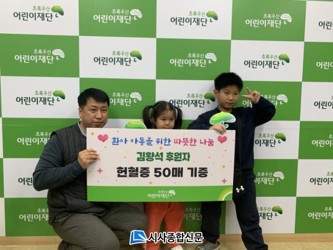 [½Ã»çÁ¾ÇսŹ® = ¿À½ÂÅà ±âÀÚ] ÃÊ·Ï¿ì»ê ¾î¸°ÀÌÀç´Ü ±¤ÁÖÁö¿ªº»ºÎ(º»ºÎÀå ±èÇö¹Ì)´Â °Áø±ºÃ» ±è¿Õ¼® ÁÖ¹«°üÀ¸·ÎºÎÅÍ ¾ÆÇ ¾Æµ¿µéÀ» À§ÇÑ ÇåÇ÷Áõ 50¸Å¸¦ Àü´Þ¹Þ¾Ò´Ù°í ¹àÇû´Ù.