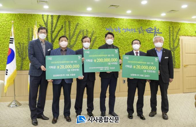 23ÀÏ ¼øÃµ½Ãû ½ÃÀå½Ç¿¡¼ ¡ã½ã¹ë¸®±×·ì(ȸÀå À̽űÙ) 2¾ï ¿ø ¡ãÈ£¼º·¹¹ÌÄÜ(ÁÖ)(´ëÇ¥ À¯Á¾¿Ï) 2õ¸¸ ¿ø ¡ã³²±¤¿¡³ÊÁö(´ëÇ¥ ±è¼º¼ö) 2õ¸¸ ¿øÀÇ ±âŹ±Ý Àü´Þ½ÄÀ» °¡Á³´Ù.