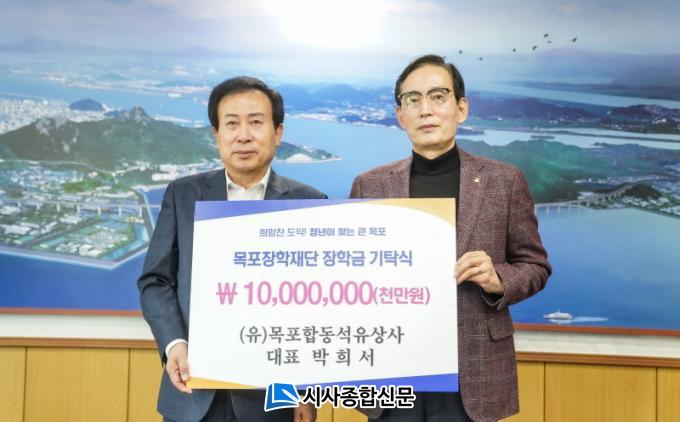 [½Ã»çÁ¾ÇսŹ® = ¿À½ÂÅà ±âÀÚ] (À¯)¸ñÆ÷ÇÕµ¿¼®À¯»ó»ç ¹ÚÈñ¼ ´ëÇ¥°¡ 23ÀÏ ¸ñÆ÷ÀåÇÐÀç´Ü(ÀÌ»çÀå ¹ÚÈ«·ü ¸ñÆ÷½ÃÀå)¿¡ ÀåÇбâ±Ý 1õ¸¸¿øÀ» ±âŹÇß´Ù.