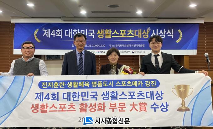 Á¦4ȸ ´ëÇѹα¹ »ýȰ½ºÆ÷Ã÷ ´ë»ó »ýȰüÀ°È°¼ºÈ Áö¿ø ºÎ¹® °ø¸ð¿¡ Áö³ 10¿ù ½Åû¼¸¦ Á¦ÃâÇÑ °Áø±ºÀº ¿ì¼ö¼º, Àü¹®¼º, È«º¸¿ª·®, ÇöÀå È£ÀÀ, Áֹο©·Ð µî Á¾Çսɻ翡¼ ³ôÀº Á¡¼ö¸¦ ¹Þ¾Ò´Ù.