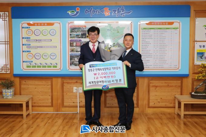 (Àç)ÀåÈﱺÀÎÀçÀ°¼ºÀåÇÐȸ(ÀÌ»çÀå ±è¼º)´Â Áö³ 23ÀÏ ¼¼°èÇ×°ø¿©Çà»ç(´ëÇ¥ ¼¿µÈÆ)¿¡¼ ÀåÇÐ±Ý 2¹é¸¸ ¿øÀ» Àü´ÞÇß´Ù°í ¹àÇû´Ù.