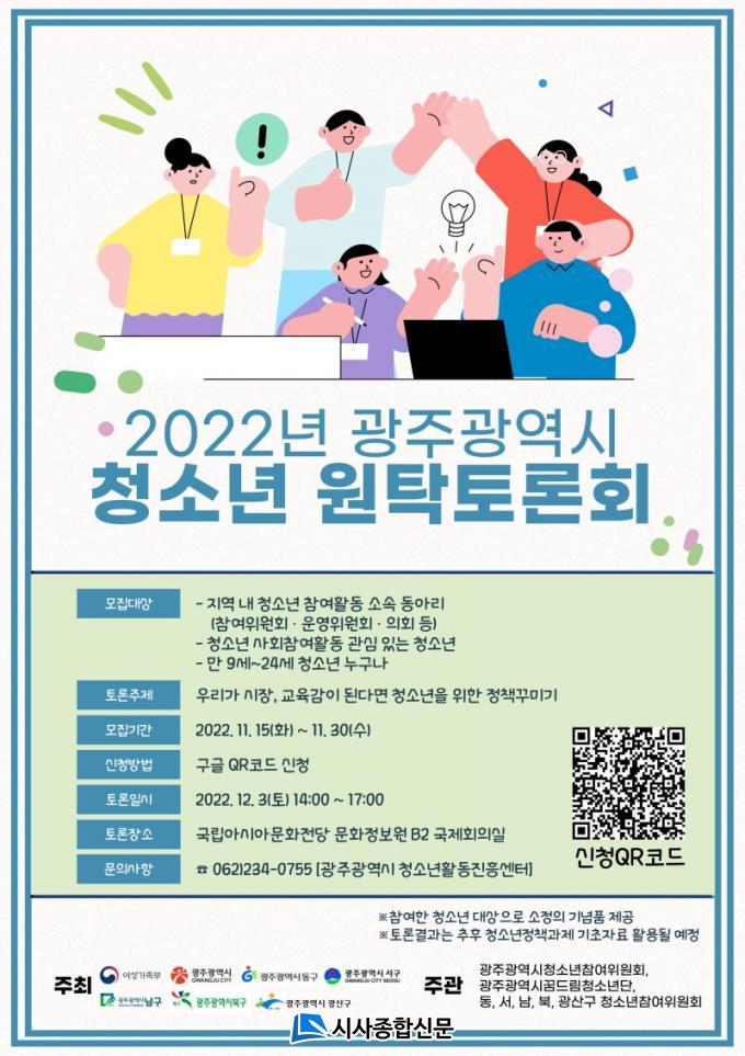 À̹ø ¿øÅ¹Åä·Ðȸ´Â ±¤ÁÖ±¤¿ª½Ãû¼Ò³âÂü¿©À§¿øÈ¸, 5°³±¸Ã»¼Ò³âÂü¿©À§¿øÈ¸, ±¤ÁÖ±¤¿ª½Ã²Þµå¸²Ã»¼Ò³â´ÜÀÇ °øµ¿ÁÖ°üÀ¸·Î ¿À´Â 12¿ù 3ÀÏ(Åä) ¿ÀÈÄ2½Ã, ±¹¸³¾Æ½Ã¾Æ¹®ÈÀü´ç ±¹Á¦È¸Àǽǿ¡¼ ÁøÇàµÈ´Ù.
