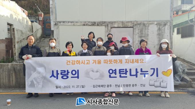 À̹ø ¡®22³â ±è±ÙÅÂÀç´Ü »ç¶ûÀÇ ¿¬Åº³ª´©±â ºÀ»çȰµ¿¡¯¿¡´Â ±è±ÙÅÂÀç´Ü ±¤ÁÖ ‧ Àü³²ÁöºÎ ½Å¼öÁ¤(±¤ÁÖ±¤¿ª½ÃÀÇ¿ø) ¿î¿µÀ§¿øÀåÀ» ºñ·ÔÇÑ È¸¿ø 15¸íÀÌ Âü¼®ÇÑ °¡¿îµ¥ ±¤ÁÖÁö¿ª Ãë¾à°èÃþÀ» ´ë»óÀ¸·Î 6°¡±¸¿¡ ¿¬Åº 1,800ÀåÀ» Àü´ÞÇϸç ÀÌ¿ôÀÇ µû¶æÇÑ °Ü¿ï³ª±â¿¡ ¿Â±â¸¦ ºÒ¾î³Ö¾ú´Ù.