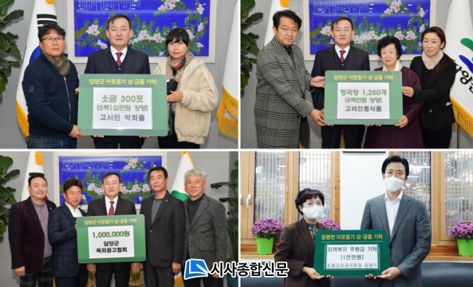 ÁÖ¿ä ÈÄ¿ø¼ºÇ°Àº ¡ã³²µµ½Äǰ(´ëÇ¥ ¹ÚÈñÃâ) ¼Ò±Ý 10kg 300Æ÷(510¸¸ ¿ø »ó´ç) ¡ã(ÁÖ)°í·ÁÀüÅë½Äǰ(´ëÇ¥ °íÈÆ±¹) û±¹Àå 1,250°³(500¸¸ ¿ø »ó´ç) ¡ã´ã¾ç±º¿Á¿Ü±¤°íÇùȸ(ȸÀå ÃÖÁ¾¼ö) 100¸¸ ¿ø µî ¸¹Àº ºÐµéÀÌ µû¶æÇÑ ¸¶À½À» ÀüÇß´Ù.