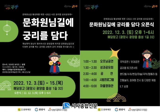 ±¤¾ç½Ã¹®Èµµ½Ã»ç¾÷´ÜÀº Áö³ 8¿ù ½Ã¹Î°ú ¿¹¼ú°¡¡¤±âȹÀÚ·Î ±¸¼ºµÈ ¿öÅ·±×·ì 10ÆÀÀ» ¸ðÁýÇϰí, ±Ã¸®¾÷ ¾ÆÄ«µ¥¹Ì¸¦ ÁøÇàÇÏ¸ç »ç¾÷¿¡ ´ëÇÑ ÀÌÇØ¿Í ¹®ÈÀû Àå¼Ò Àç»ý, ¹®È¿¹¼ú±âȹ µî ¿ø´Ô±æ Ȱ¼ºÈ¿¡ ´ëÇØ ÇÔ²² °í¹ÎÇß´Ù.