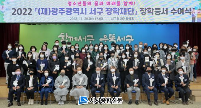 ÀåÇлý ¹× Çкθð, ±âŹÀÚ µî ÃÑ 70¿©¸íÀÌ Âü¼®ÇÑ À̹ø ¼ö¿©½ÄÀº 2021³â ÀåÇлý ÀÎÅÍºä ¿µ»ó½Ãû, ÀåÇÐÁõ¼ ¼ö¿©, °Ý·Á¸»¾¸, ±â³ä ÃÔ¿µ¼øÀ¸·Î ÁøÇàµÆ´Ù. ƯÈ÷, Áö³ 3¿ù 8¹é¸¸¿øÀÇ ÀåÇбÝÀ» ±âŹÇÑ ¿ùÀνº´ÔÀÌ Á÷Á¢ ÀåÇÐÁõ¼¸¦ ¼ö¿©ÇÏ¸é¼ ÀåÇлýµéÀ» °Ý·ÁÇØ ´«±æÀ» ²ø¾ú´Ù.