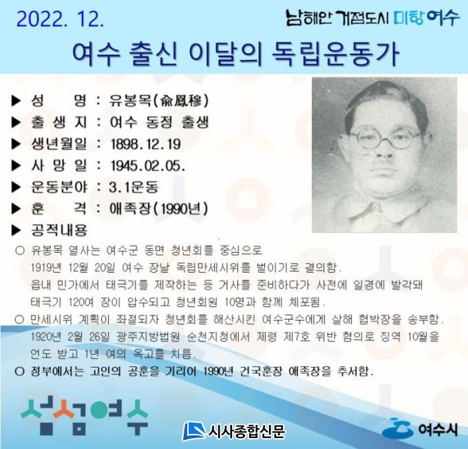 ¡®À¯ºÀ¸ñ ¼±»ý¡¯Àº ¿©¼ö±º µ¿¸é û³âȸ¸¦ Áß½ÉÀ¸·Î 1919³â 12¿ù 20ÀÏ À峯¿¡ µ¶¸³¸¸¼¼ ½ÃÀ§¸¦ ¹úÀ̱â·Î °áÀÇÇß´Ù.
