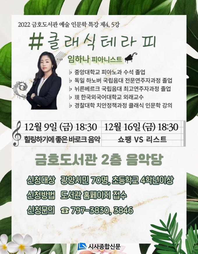 ¡®Å¬·¡½Ä Å×¶óÇÇ¡¯ Ư°¿¡ ´ëÇØ ±Ã±ÝÇÑ »çÇ×Àº ±¤¾ç½Ã¸³µµ¼°ü ȨÆäÀÌÁö(lib.gwangyang.go.kr)¸¦ Âü°íÇϰųª ±¤¾ç±ÝÈ£µµ¼°ü(¢Ï061-797-3846)À¸·Î ¹®ÀÇÇϸé ÀÚ¼¼È÷ ¾È³»¹ÞÀ» ¼ö ÀÖ´Ù.