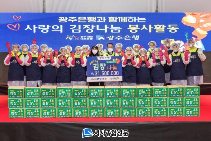 | ±¤ÁÖÀºÇà, »ç¶ûÀÇ ±èÀ峪´® ºÀ»çȰµ¿À¸·Î Áö¿ª¹Î°ú µû¶æÇÑ °Ü¿ï³ª±â ±èÀ峪´® ºÀ»çȰµ¿ÀÇ ÈÄ¿ø±ÝÀ¸·Î 3,150¸¸¿ø Àü´ÞÇϸç, Áö¿ª ¼Ò¿Ü°èÃþÀÇ °Ç°ÇÑ °Ü¿ï³ª±â¸¦ À§ÇÑ ±èÀå±èÄ¡ ´ã±×±â¿¡ ¼ÛÁ¾¿í ±¤ÁÖÀºÇàÀå°ú ½ÅÀÔÇà¿øÀÌ µ¿ÂüÇØ